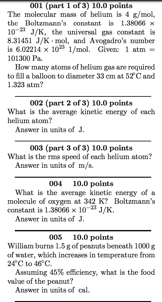The molecular mass of helium is 4 g/mol, the Boltzmann’s constant is 1.38066 X