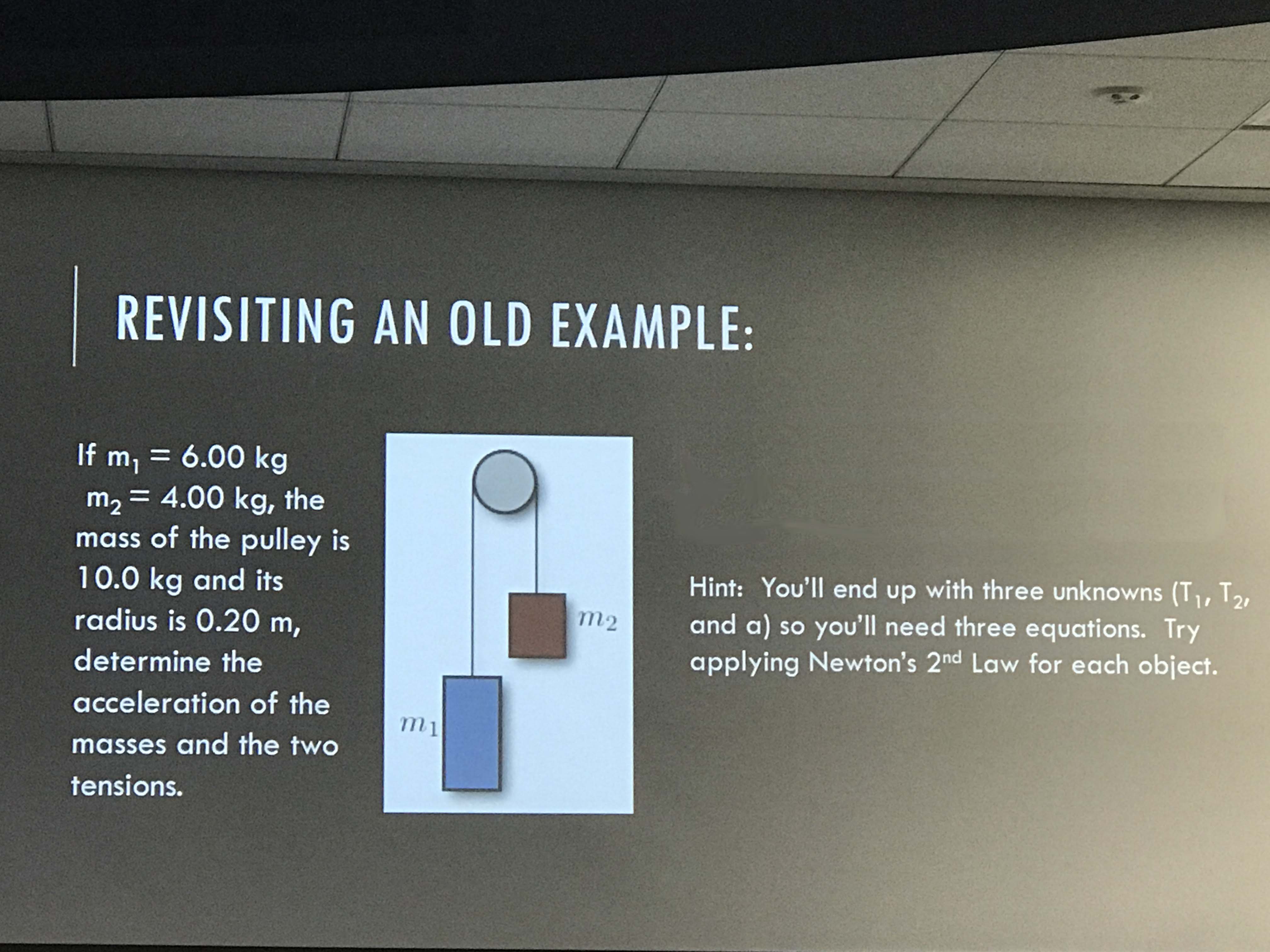 mass of the pulley is 1 0-0 kg and its Hint: You’ll end up with three unknowns (T1, T2,