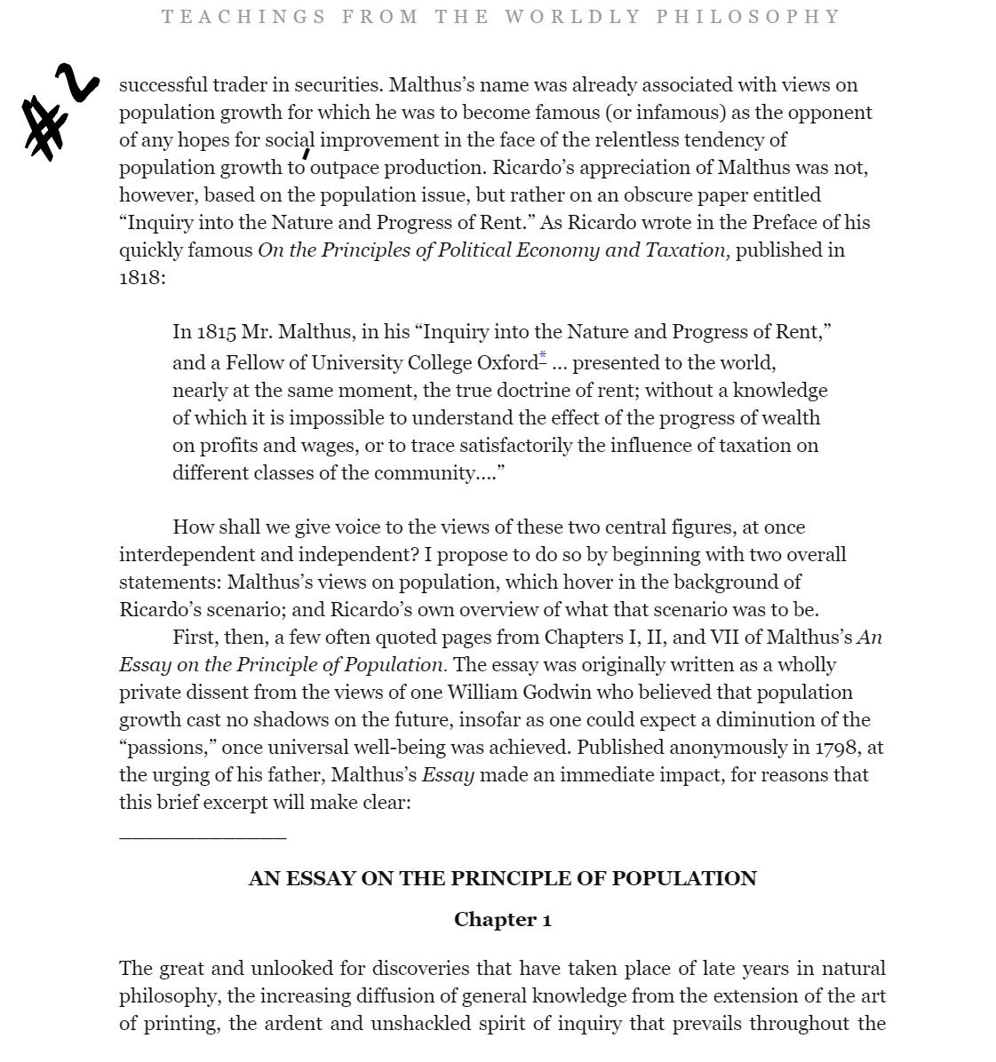 I need 3-4 pages’ essay double-spaced critiquing Robert Malthus' theory of Principle of Population. Begin with a careful and objective description of the concept as enunciated by the author. The purpose of a critique is to identify strong and weak points in the original text. A critique means to influence. You are taking a stance or point of view regarding your subject. I attached 5 pages from the book of the theory you have to critique. I numbered the pages so you can easy track them.  Please avoid any grammar mistakes and use professional tone.Â