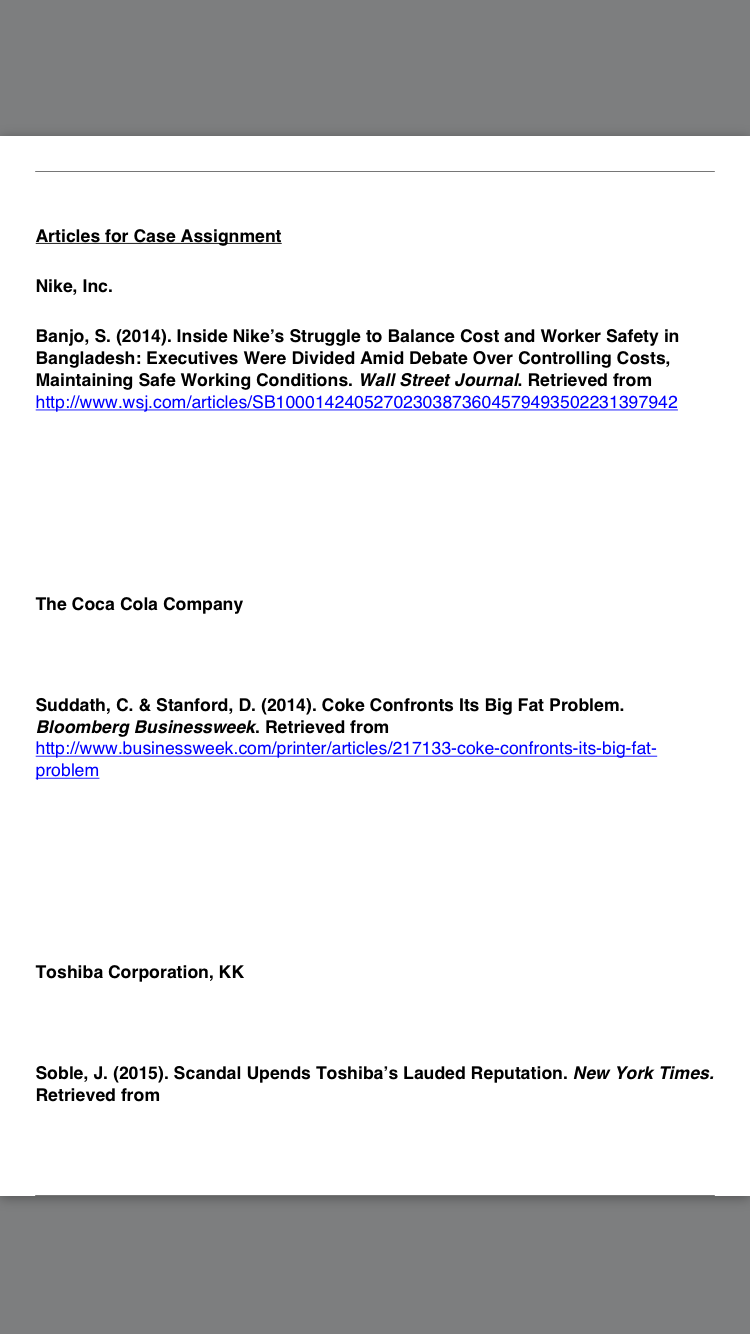 Please select a company from among the ones listed below (see Articles fo Case Assignment) or else select an organization of choice facing an ethical dilemma (must be approved by Professor).Make sure you address the statements and questions below: