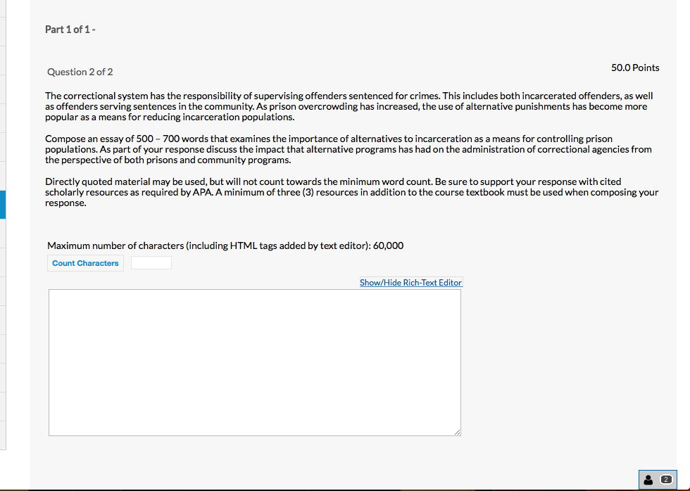 Panic“.- Question 2 of 2 50.0 F‘oinis The correctional system has the responsibility of supervising offenders sentenced for crimes. This includes both incarcerated offenders, as well