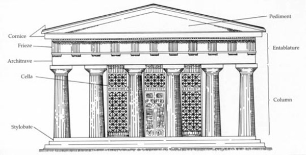-Pediment containing sculptures