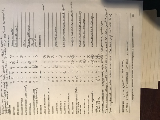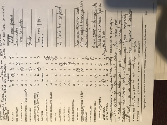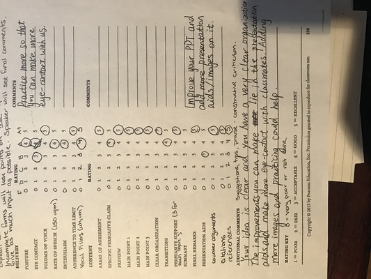 2 pages paper about (what went well in the speech? What went poorly? What would you change if you can do it again? How did the speech you gave differ from your outline, and was it good for your presentation, or bad? Finally, explain your research process-how you prepared). And please read the comments first.