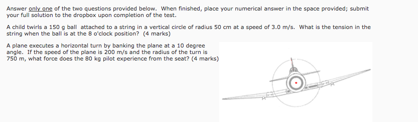 string when the ball is at the El o'clock position? {4 marks} A plane executes a horizontal turn by banking the plane at a ll] degree