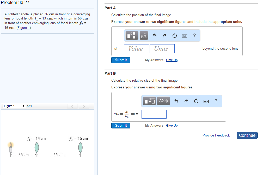 Problem 33.2? Part A A lighted candle is placed 35 cm in front of a converging